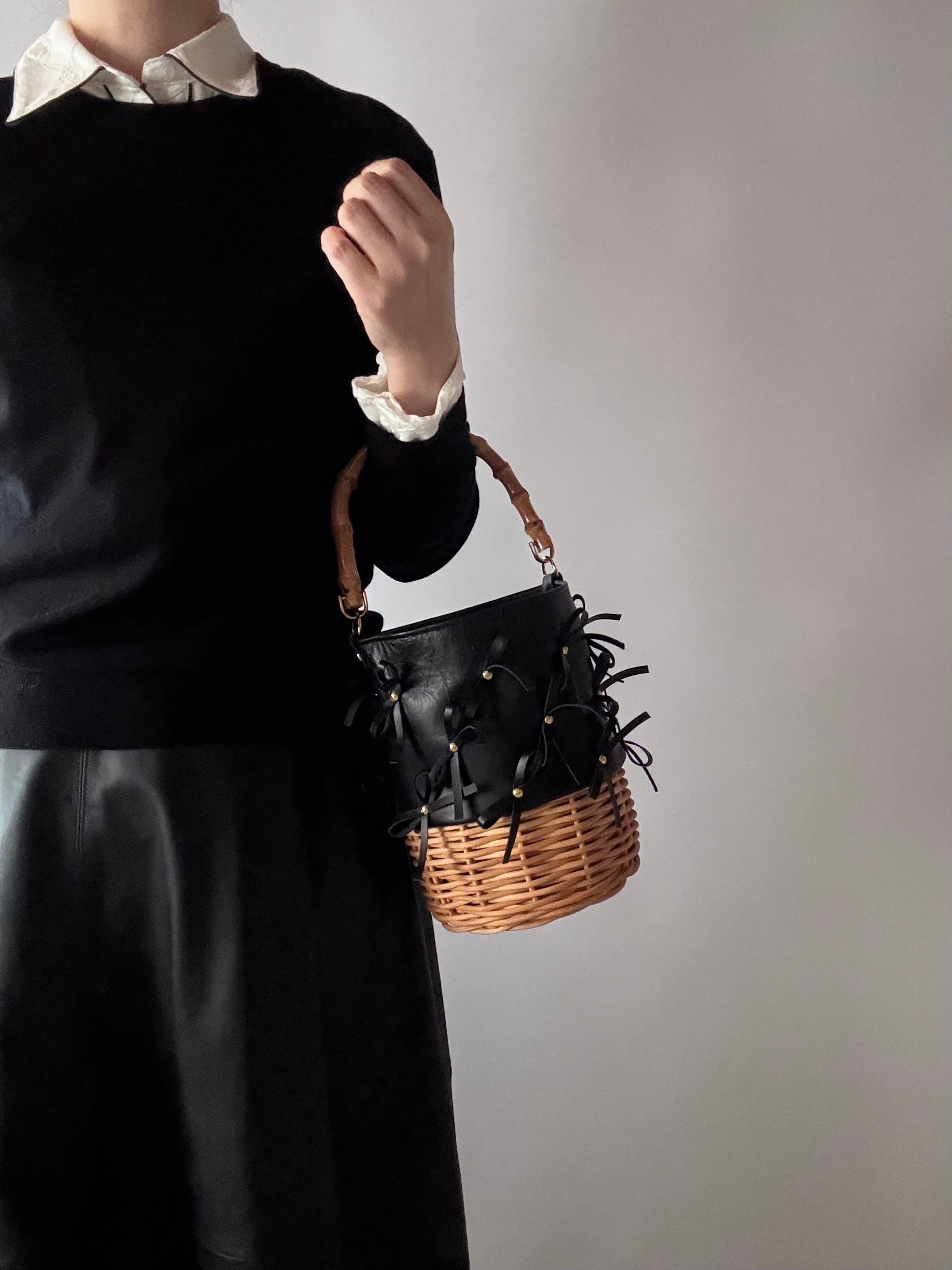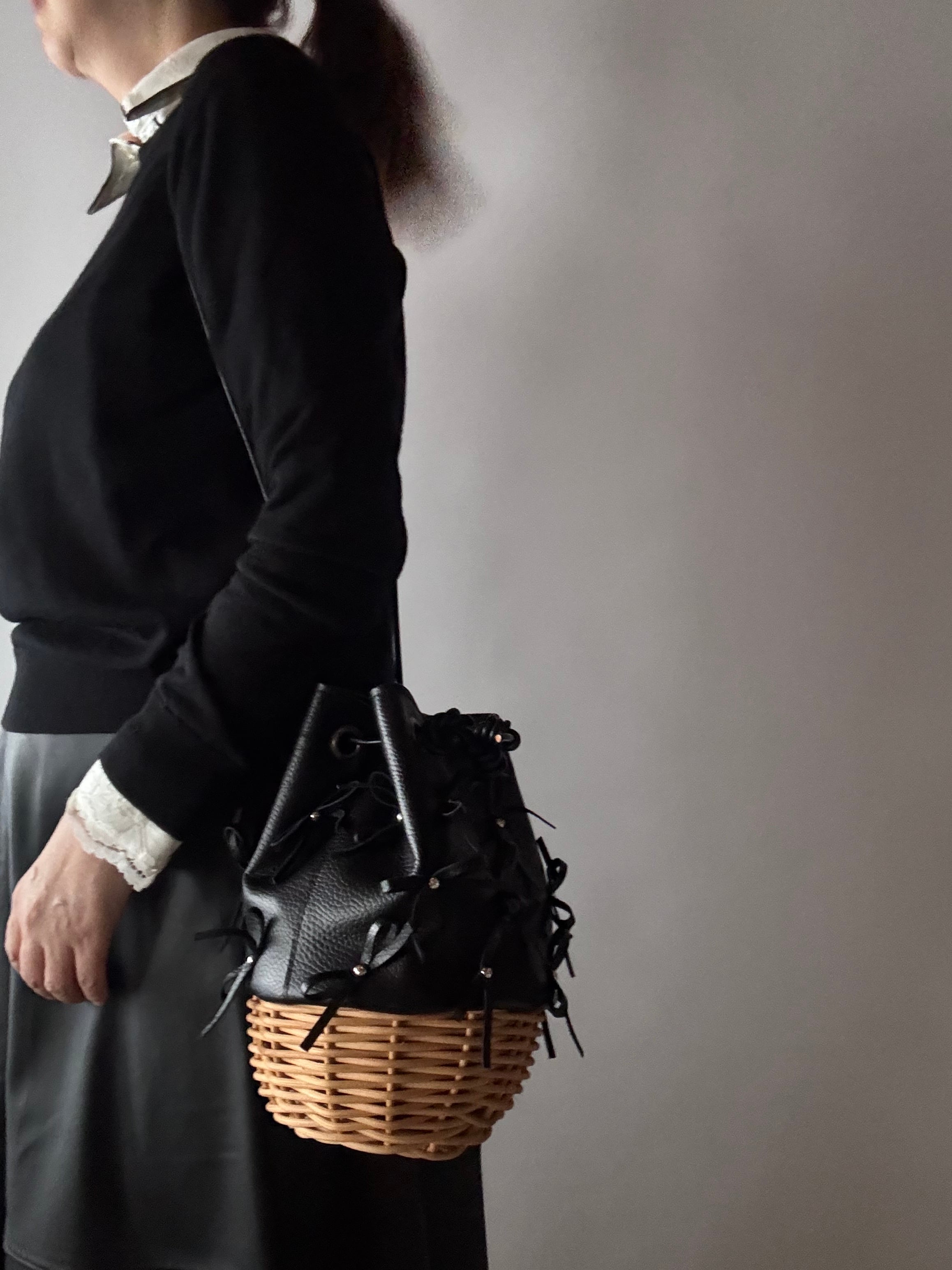 籐とレザーの組み合わせたバッグは新鮮で個性的、しかしエレガント〜フェミニンまたカジュアルなコーディネートにも持っていただけます。