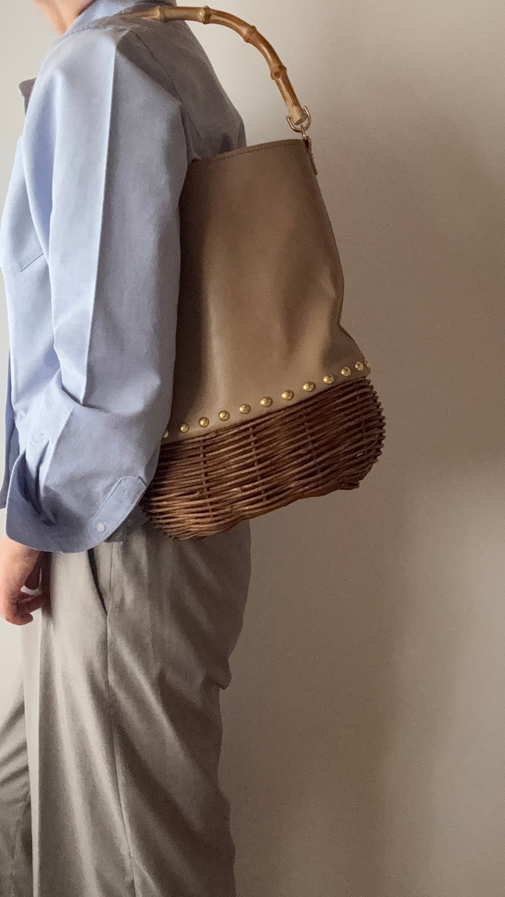 籐とフェイクレザーの組み合わせたバッグは新鮮で個性的、しかしエレガント〜フェミニンまたカジュアルなコーディネートにも持っていただけます。