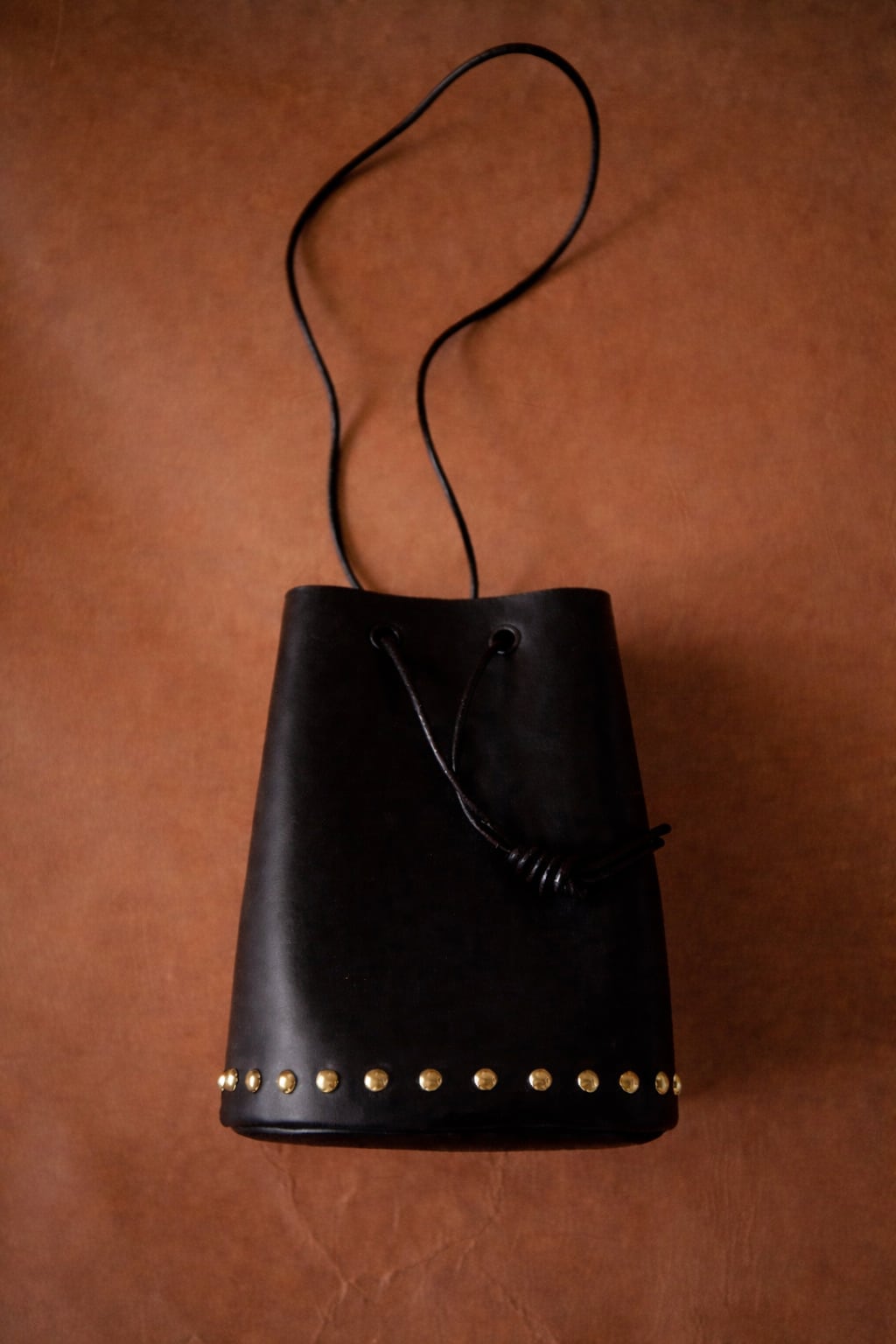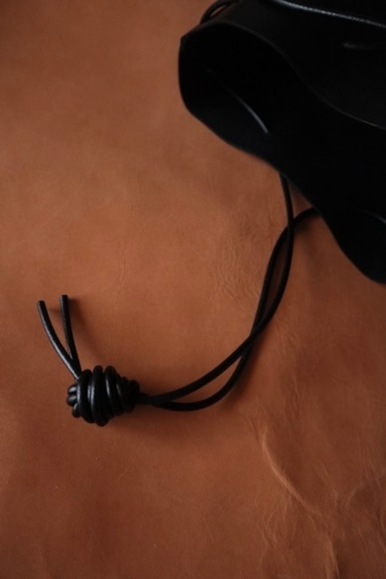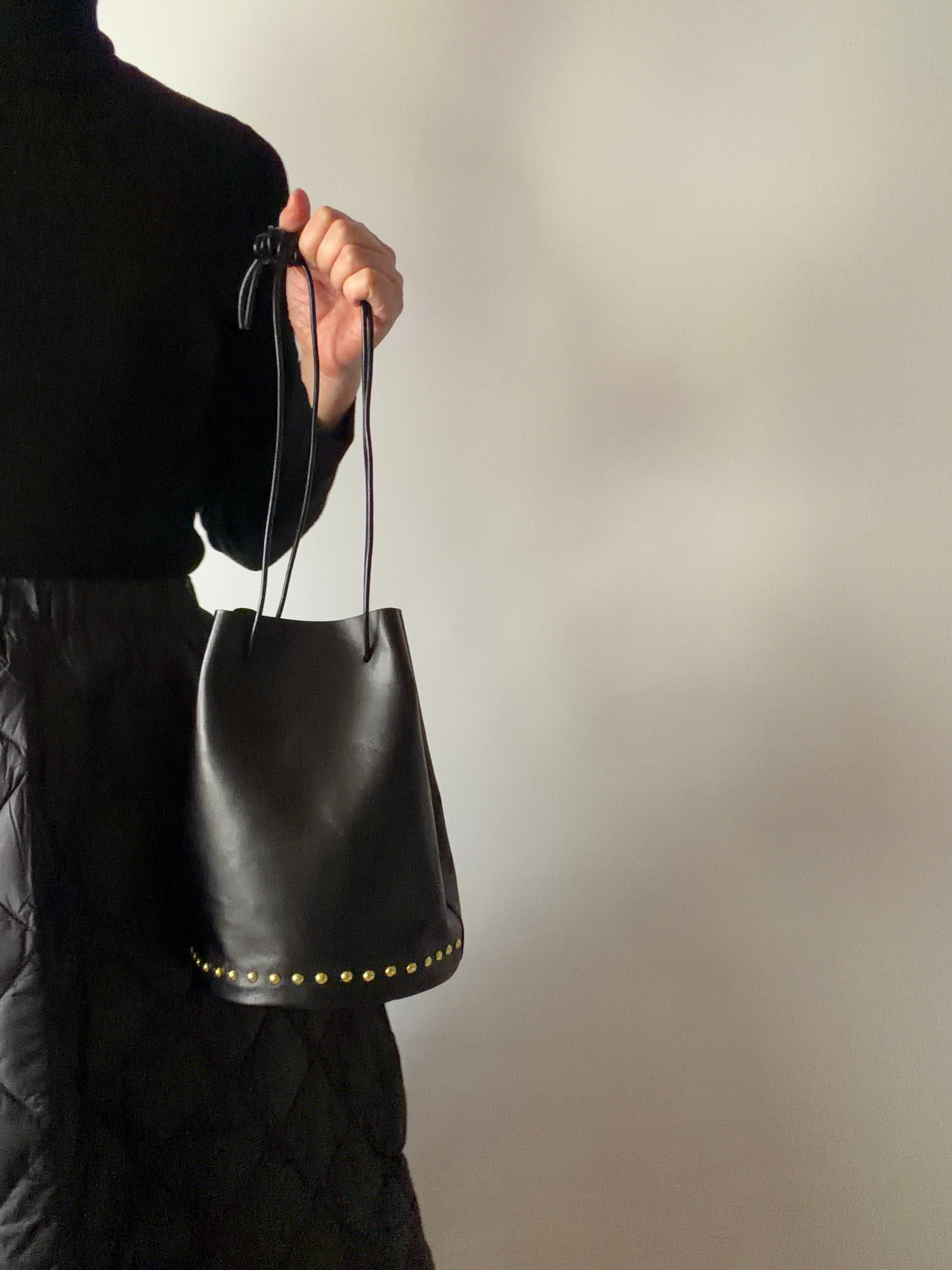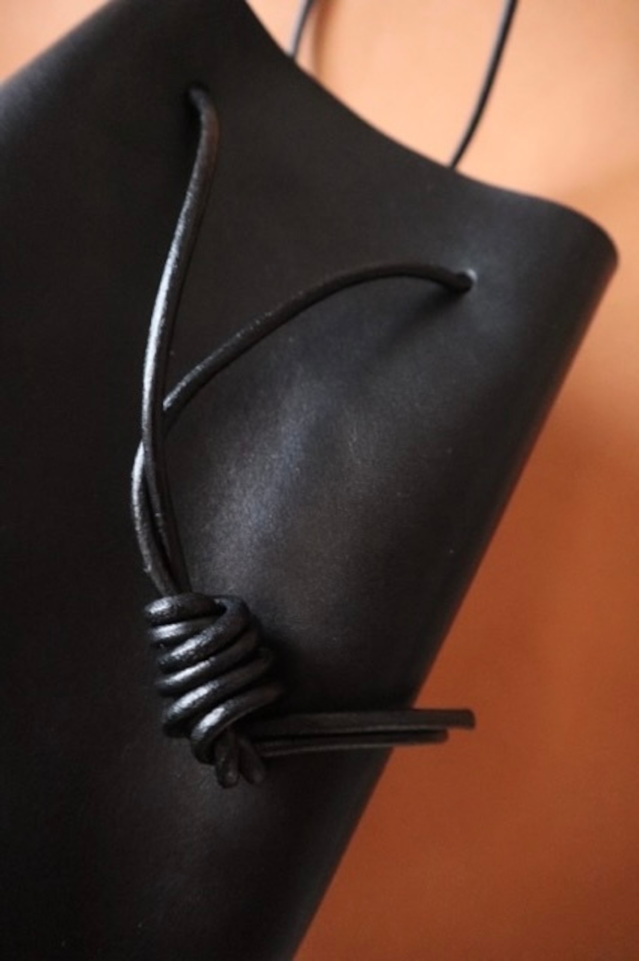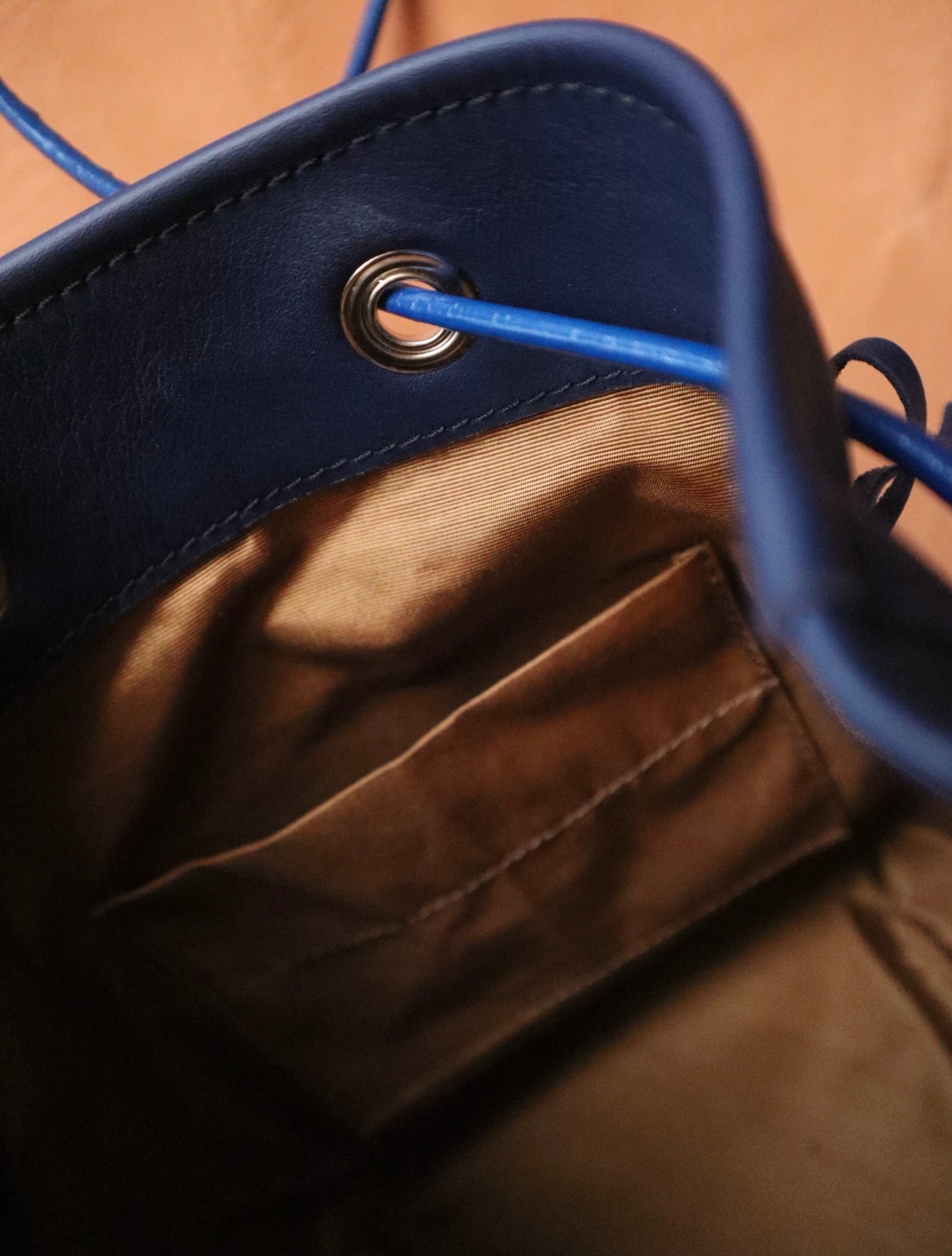こちらは裏地、ポケットありニコルレザー巾着ミニより高さがあり長財布が入ります。