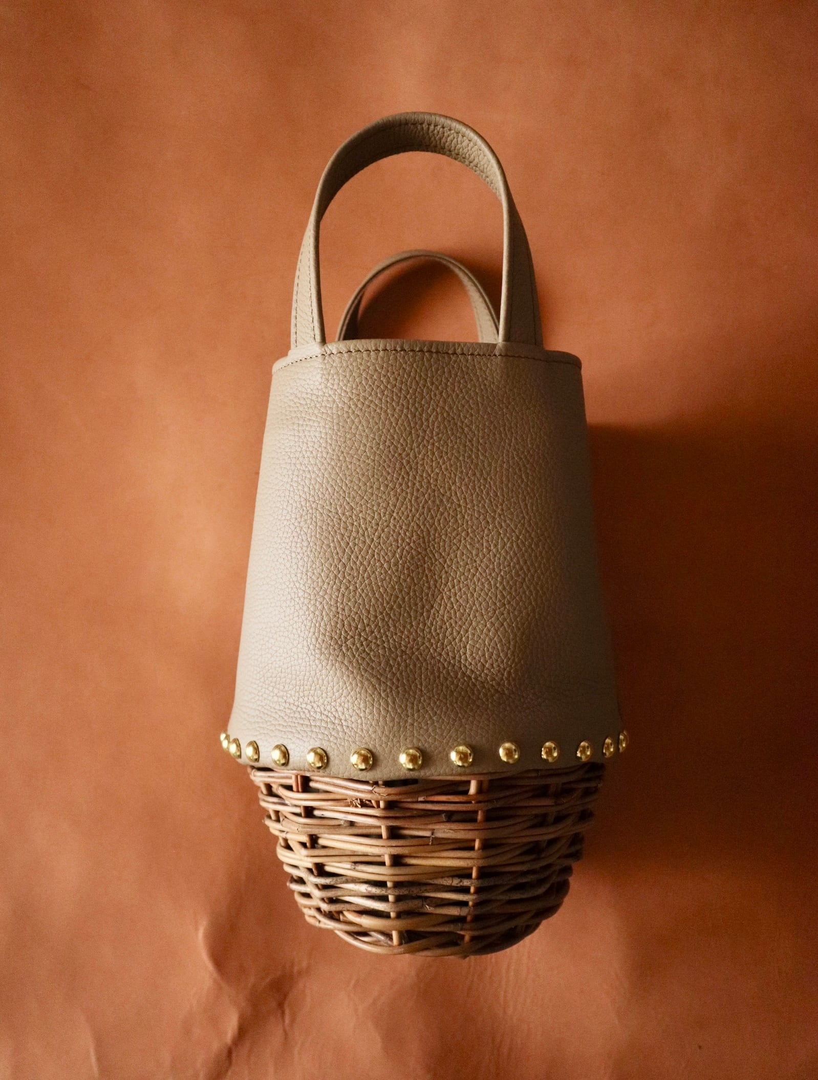 籐のかごとスタッズ(カラーや大きさ)とレザーを組み合わせたデザインはRibbon bの代表的なかごバッグのシリーズとしてヨーロッパやアメリカの女の子の名前で表現しております。