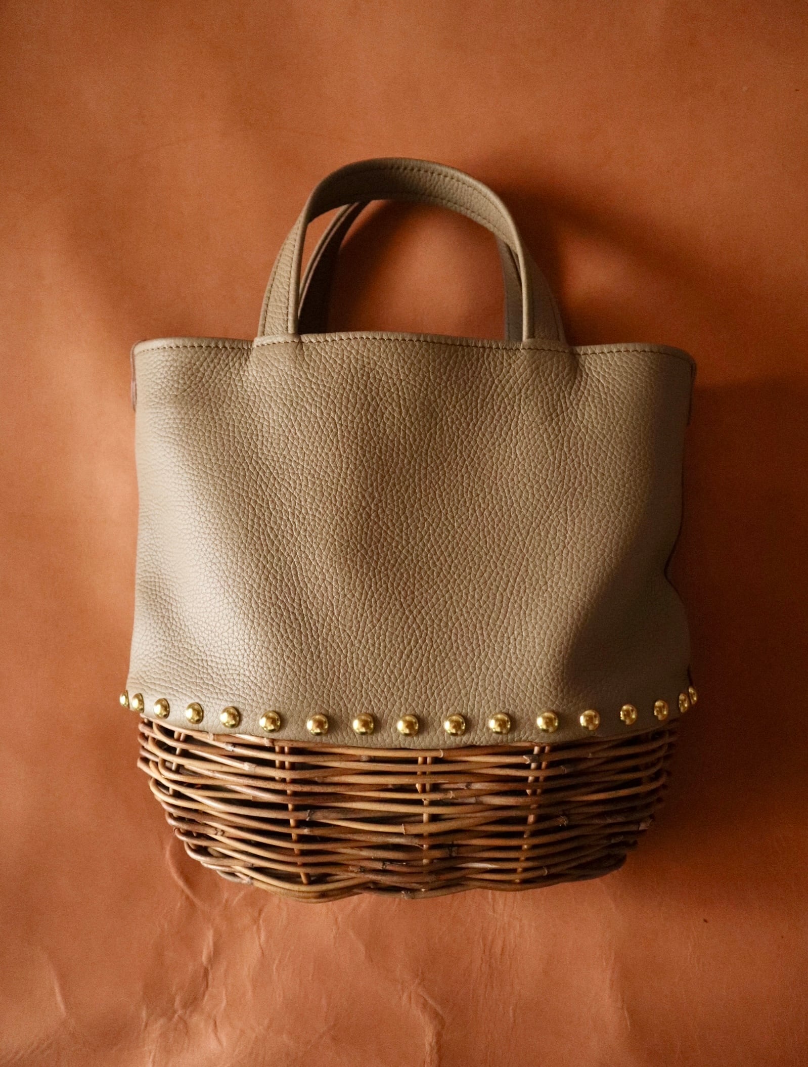 素材 藤、レザー(牛革)、スタッズ 金具 真鍮、