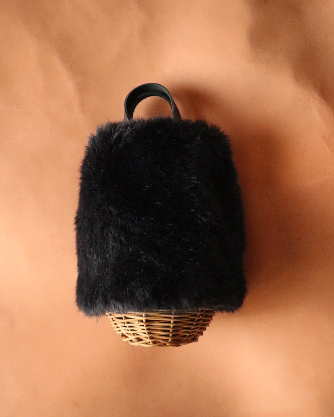 藤のカゴとエコファーの異素材をミックスしたオリジナルなデザイン。